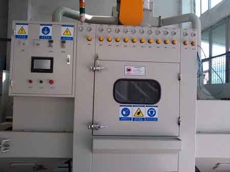 為深圳比亞迪定做的觸控全自動(dòng)輸送式噴砂機(jī),