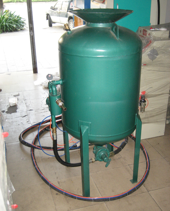 無限大,可以配5-40米噴砂管,噴砂罐體帶有輪子可以移動。(本機標準配10米)